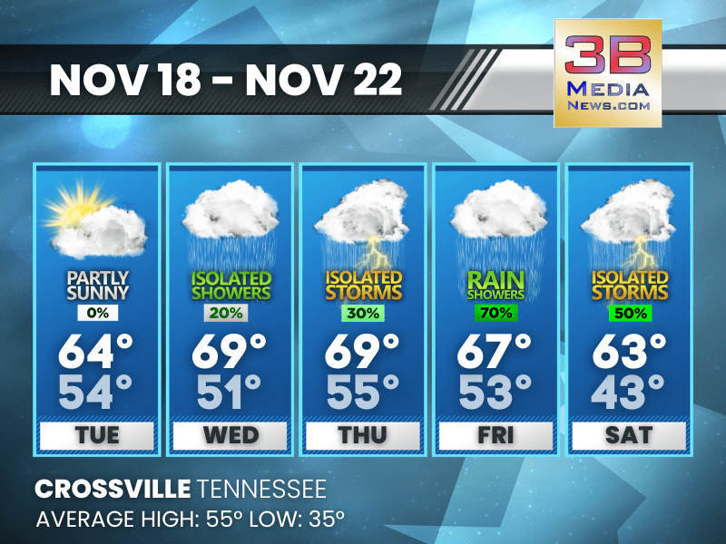 A quiet, mild Tuesday gives way to several waves of showers and thunderstorms stretching from Tuesday night through the weekend. Tuesday: Partly sunny, with a high near 64. South wind 5 to 15 mph, ...