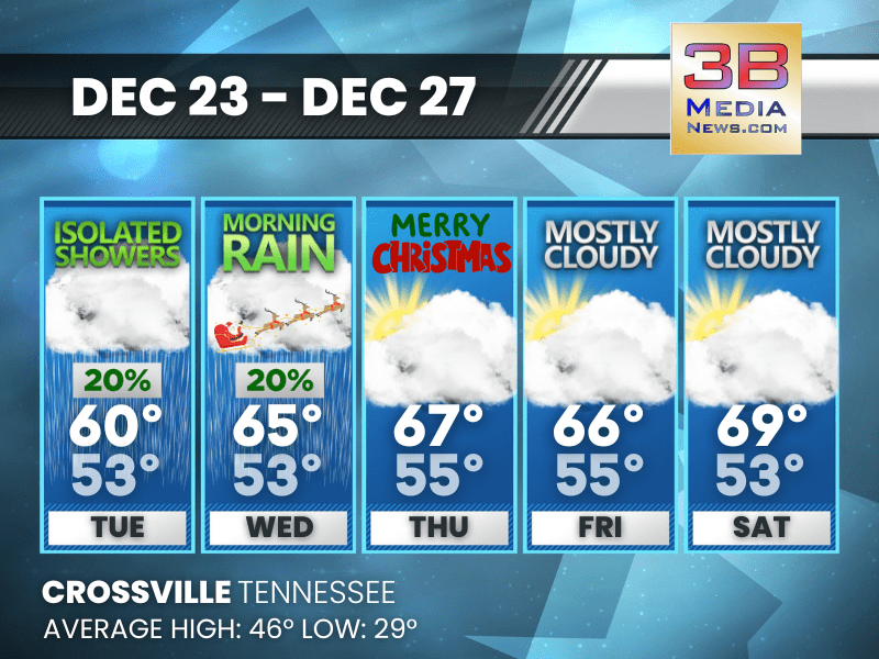 SPOTTY SHOWERS EARLY, WARMER AND CLOUDY INTO CHRISTMAS