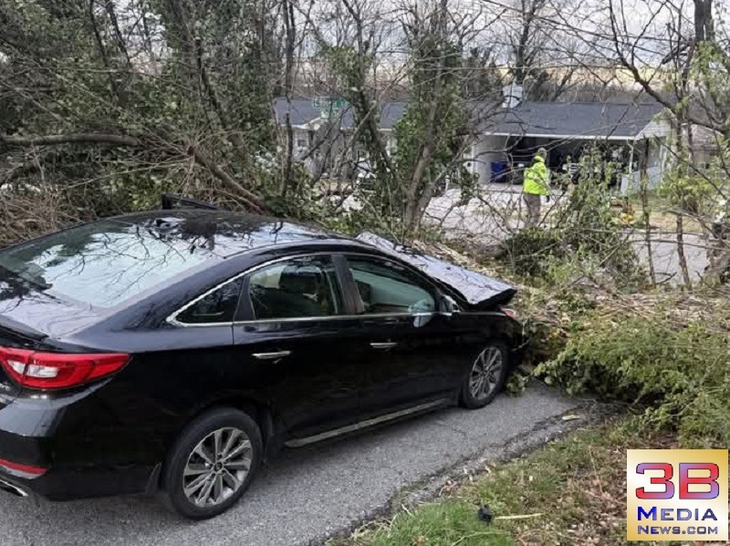 TREE FALLS AND COLLIDES WITH A MOVING VEHICLE IN ROCKWOOD