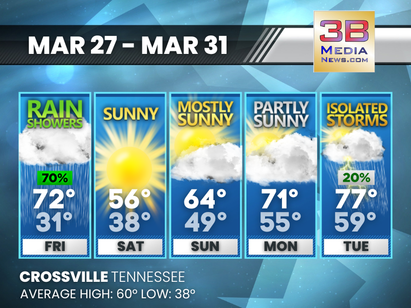 The City of Crossville Utility Maintenance department will have Palmetto Drive closed today (Thursday, March 26, 2026) from Cactus Circle to Rhododendron Circle for a sewer line installation. Pleas ...