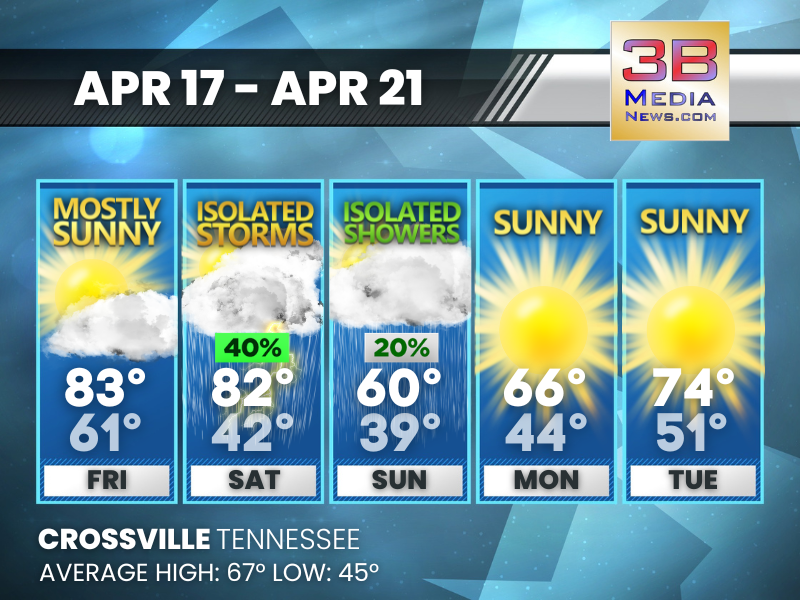 Temperatures trend cooler through the weekend with scattered rain chances, followed by a dry and milder start to the new week. Friday: Mostly sunny, with a high near 83. Calm wind becoming west sou ...