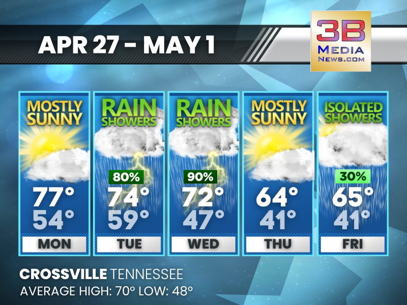 Rain and thunderstorms dominate the middle of the week before cooler, quieter weather settles in for the final stretch. Monday: Mostly sunny, with a high near 77. South wind 5 to 10 mph, with gusts ...