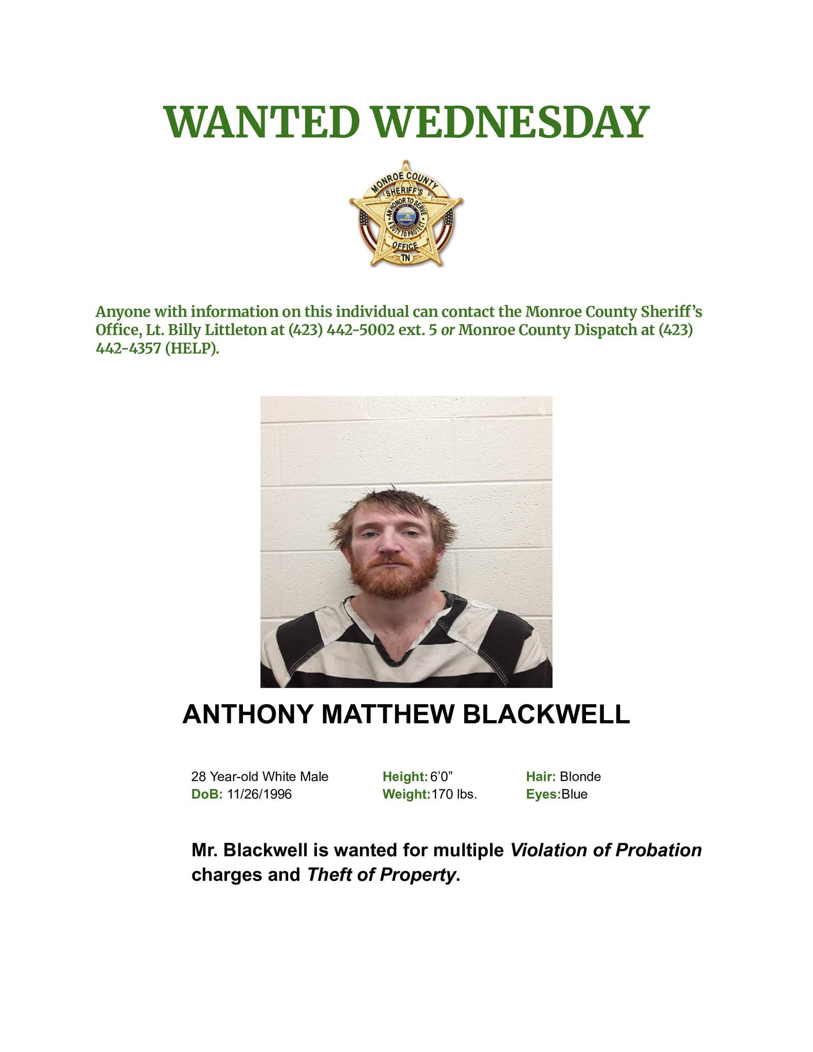 November 5, 2025 in Regional, Top Stories ANTHONY BLACKWELL WANTED BY MONROE DEPUTIES FOR THEFT CHARGES Shea James 0 Like Post