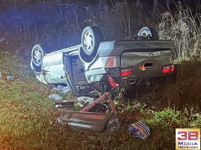 CAR OVERTURNS OFF OF HIGHWAY 70 IN CUMBERLAND COUNTY