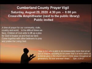 CUMBERLAND COUNTY PRAYER VIGIL TO BE HELD AUGUST 29, 2020