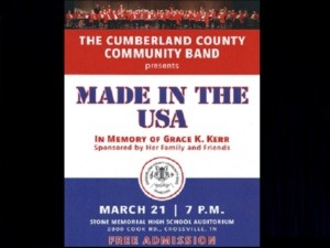 The Cumberland County Community Band presents its next concert tomorrow evening, March 21 at 7 p.m. “Made in the U.S.A.” will feature a special program dedicated in memory of Grace K. Kerr, sponsored ...