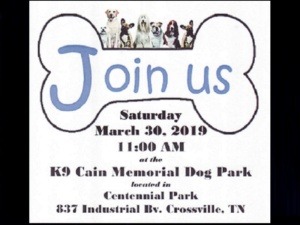 The City of Crossville and Dog Park Dash present the dedication of the K-9 Cain Memorial Dog Park at Centennial Park in Crossville, Saturday, March 30. The festivities begin at 11 a.m. with a ribbon-c ...
