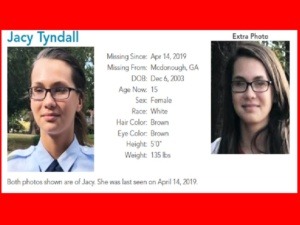 Police need your help finding a missing teenage girl from McDonough, Georgia. The National Center for Missing and Exploited Children (NCMEC) says 15-year-old Jacy Tyndall was last seen on April 14, 20 ...