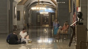 Activists with the Enough is Enough Tennessee campaign held a sit-in at Governor Lee's office to demand the resignation of Representative David Byrd. Allegations of sexual assault surfaced last y ...