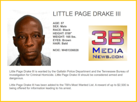 From the Tennessee Bureau of Investigation: We need your help to find Little Page Drake III, wanted by Gallatin Police and TBI for Criminal Homicide. He’s 5'9, 165lbs, with no hair and brown e ...