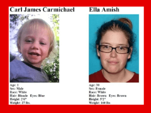 The Tennessee Bureau of Investigation reports that one-year-old Carl Carmichael has been found safe. The toddler was discovered in Tampa, Florida and suspect Ella Amish is in custody. No further infor ...
