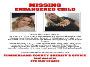 A missing endangered child alert has been issued in Cumberland County. 15-year-old Lexus Vandever has been missing since April 12 when she did not return home from Cumberland County High School. It is ...