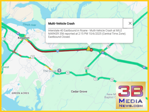 MULTI-VEHICLE CRASH ON I-40 IN ROANE COUNTY; RIGHT LANE BLOCKED