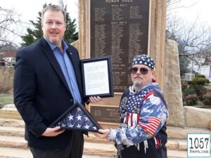 TIM FRENCH PRESENTS AMERICAN FLAG TO CUMBERLAND COUNTY