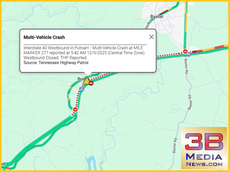 On December 9, 2025, a multi-vehicle crash occurred on Interstate 40 westbound in Putnam County, Tennessee, at mile marker 277, prompting authorities to close the westbound lanes fully. This incide ...