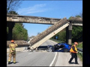 CONCRETE RAILING FALLS FROM BRIDGE, CRASHES ONTO I-75 IN CHATTANOOGA