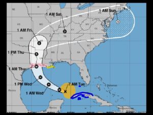 Showers and thunderstorms are likely through Sunday and they 40 to 50% chance will continue Monday and Tuesday and then we will turn our thoughts to Hurricane Sally which is expected to make landfall ...