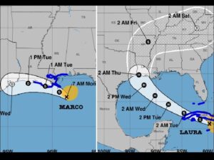 TROPICAL STORM MARCO WEAKENING; LAURA TO BECOME HURRICANE HEADING TOWARD GULF COAST