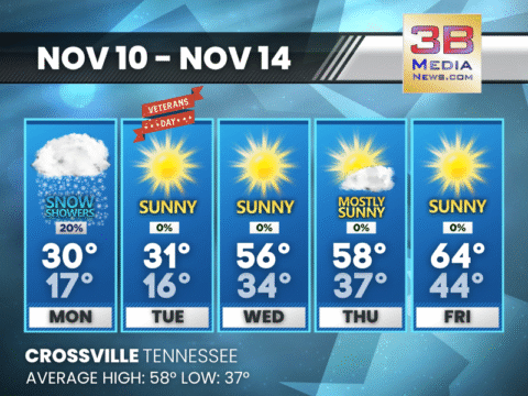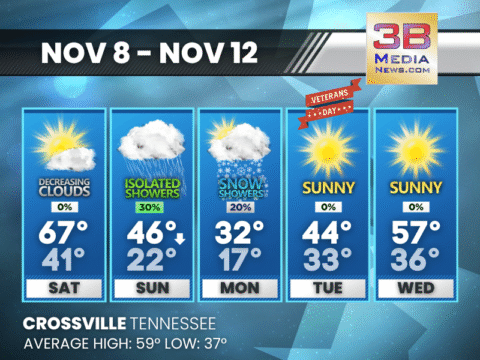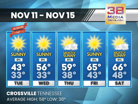 Veterans Day brings sunshine and a cool breeze, followed by a steady midweek warm-up that peaks near the mid-60s by Friday and Saturday. Veterans Day: Sunny, with a high near 43. West wind 5 to 10 ...