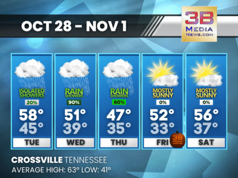 Showers dominate Tuesday night through Thursday before clearing skies bring a brighter and cooler Halloween weekend with frost possible at night. Tuesday: A 20 percent chance of showers between 11a ...