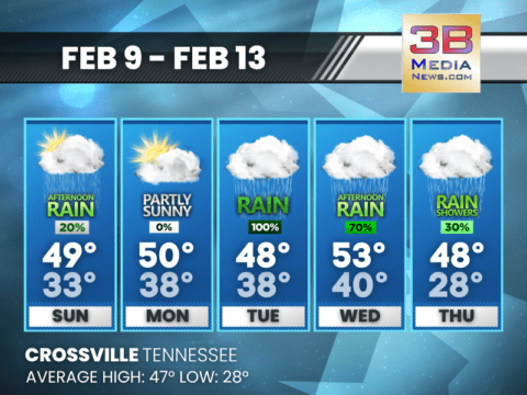 Middle TN to see periodic rain with no severe threat; East TN faces flooding risk as heavy rainfall expected Monday night through Thursday. Sunday: A 20 percent chance of showers after 5pm. Cloudy, ...