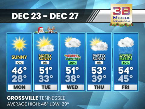 MOSTLY SUNNY DAYS LEAD INTO POSSIBLE CHRISTMAS SHOWERS