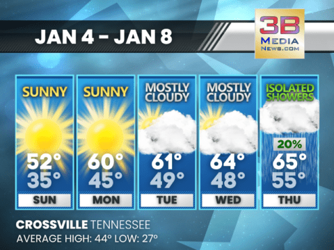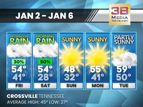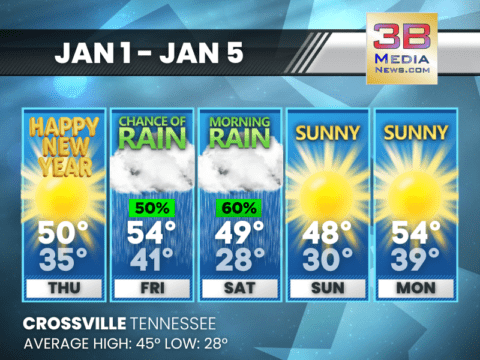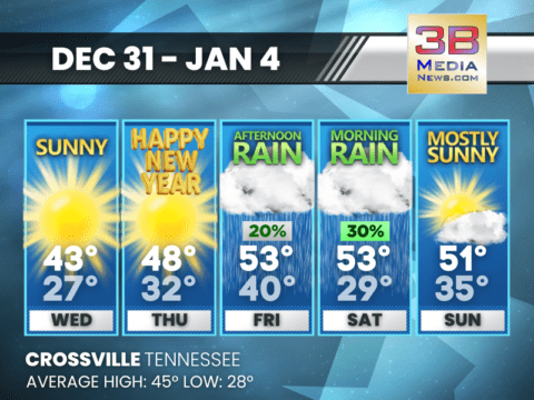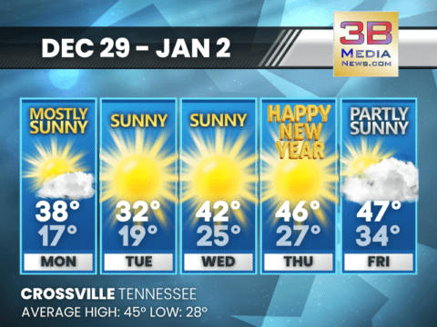 Crossville starts the week below average before sunshine and rain bring a warmer finish into the New Year. Tuesday: Cloudy through mid morning, then gradual clearing, with a high near 33. Northwest ...