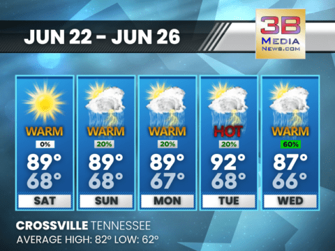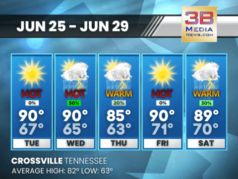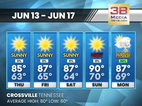East Tennessee: Hot and humid conditions are expected with highs in the 90s most days and heat indices near 100. Many places will likely stay dry, but isolated to scattered thunderstorms are possible ...