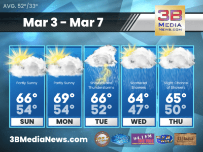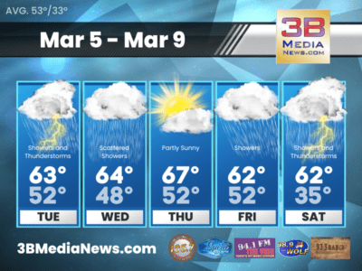 Rain will continue on Wednesday before coming to an end late in the day. Warm and dry on Thursday before another system brings more rain to the area Friday and Saturday. Wednesday: A 50 percent cha ...