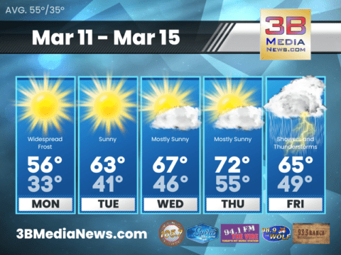Warmer temperatures ahead. Monday: Widespread frost before 9am. Otherwise, sunny, with a high near 56. North wind around 5 mph. Monday Night: Mostly clear, with a low around 33. West wind around ...