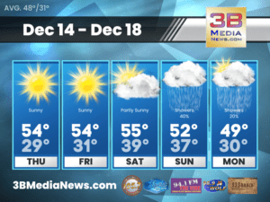Dry weather will continue through Friday with slightly warmer than normal highs. Thursday: Sunny, with a high near 54. East northeast wind around 5 mph. Thursday Night: Clear, with a low around 29. ...