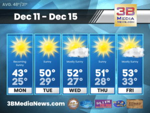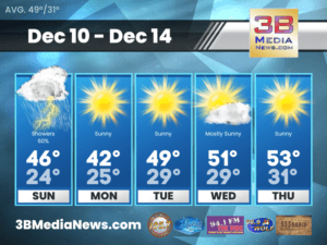 Monday will be cool, but we will at least get to enjoy plenty of sun. Monday: Partly sunny, then gradually becoming sunny, with a high near 43. Northwest wind around 5 mph. Monday Night: Clear, with ...