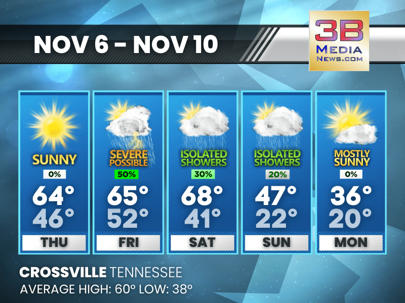 Weather information is provided by the National Weather Service in Nashville and Morristown. You can hear the latest forecast on 105.7 The Hog, 94.1 The Vibe (1410 AM), Spirit 101.9, 98.9 The Wolf, and 93.3 The Ranch (580 AM). Stay connected with Weathercaster Johnny Caudle on social media by following him on Facebook, X, Instagram, Bluesky, and Threads. You can also click here to send him an email.