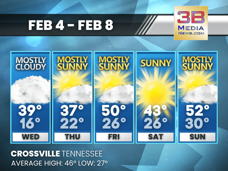 Weather information is provided by the National Weather Service in Nashville and Morristown. You can hear the latest forecast on 105.7 The Hog, 94.1 The Vibe (1410 AM), Spirit 101.9, 98.9 The Wolf, and 93.3 The Ranch (580 AM). Stay connected with Weather Reporter Johnny Caudle on social media by following him on Facebook, X, Instagram, Bluesky, Mastodon, TikTok, YouTube, and Threads. You can also click here to send him an email.