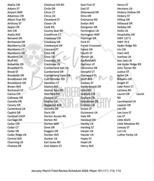 Cumberland County Assessor Kelly Buchannon has announced that the office’s field appraisers will continue their ongoing property reviews this quarter as part of the county’s five-year cycle for the 2027 Reappraisal. This process, which began in 2022 and involves systematically examining all 210 county map sections on a rotating basis, has always been conducted, but the office is now prioritizing greater transparency by informing property owners in advance about the areas where teams will be active.