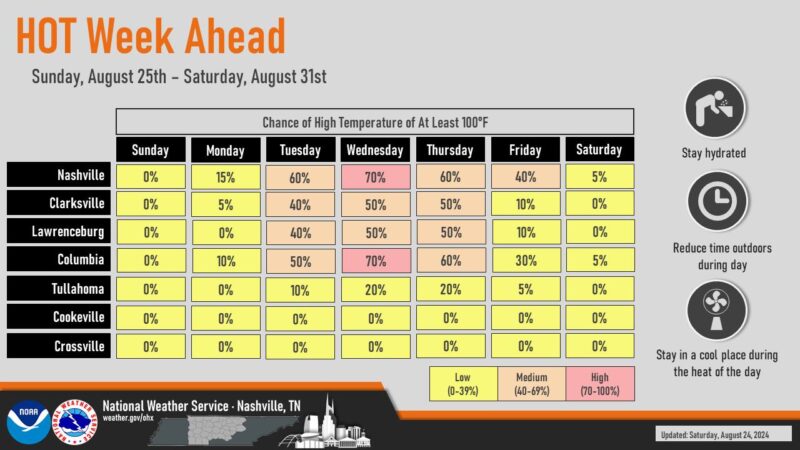 Limit your time outdoors this week if you can and be sure to stay hydrated.