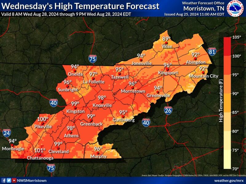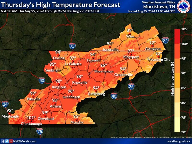 Weather information is provided by the National Weather Service in Nashville and Morristown. Hear the latest forecast on 105.7 The Hog, 94.1 The Vibe (1410 AM), Spirit 101.9, 98.9 The Wolf, and 93.3 The Ranch (580 AM).