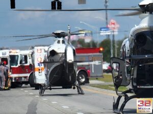 Two LifeStar medical helicopters landed at the scene to transport the three to U.T. Medical Center for treatment of serious injuries.