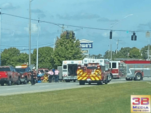 It states a 2007 Chevy driven by 44-year-old Jennifer Enochs of Jonesborough, Indiana, was traveling north and was in the left turn lane to enter the parking lot of Lowes.