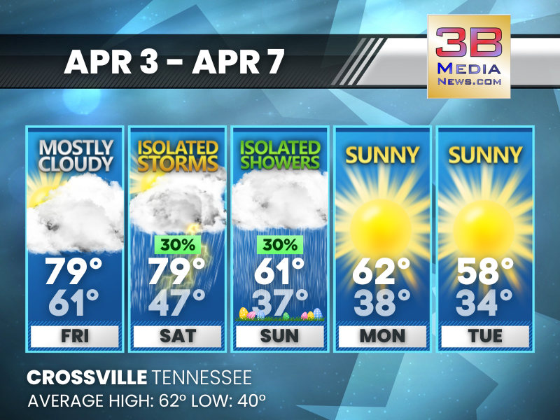 Weather information is provided by the National Weather Service in Nashville and Morristown. You can hear the latest forecast on 105.7 The Hog, 94.1 The Vibe (1410 AM), Spirit 101.9, 98.9 The Wolf, and 93.3 The Ranch (580 AM). Stay connected with Weather Reporter Johnny Caudle on social media by following him on Facebook, X, Instagram, Bluesky, and YouTube. You can also click here to send him an email.