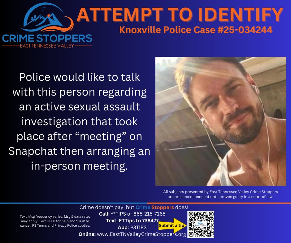 If you know who he is or have any information that could help, stay anonymous and submit a tip to East Tennessee Valley Crime Stoppers.