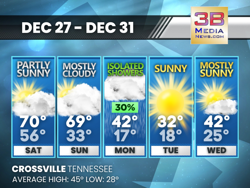 Weather information is provided by the National Weather Service in Nashville and Morristown. You can hear the latest forecast on 105.7 The Hog, 94.1 The Vibe (1410 AM), Spirit 101.9, 98.9 The Wolf, and 93.3 The Ranch (580 AM). Stay connected with Weather Reporter Johnny Caudle on social media by following him on Facebook, X, Instagram, Bluesky, Mastodon, TikTok, YouTube, and Threads. You can also click here to send him an email.