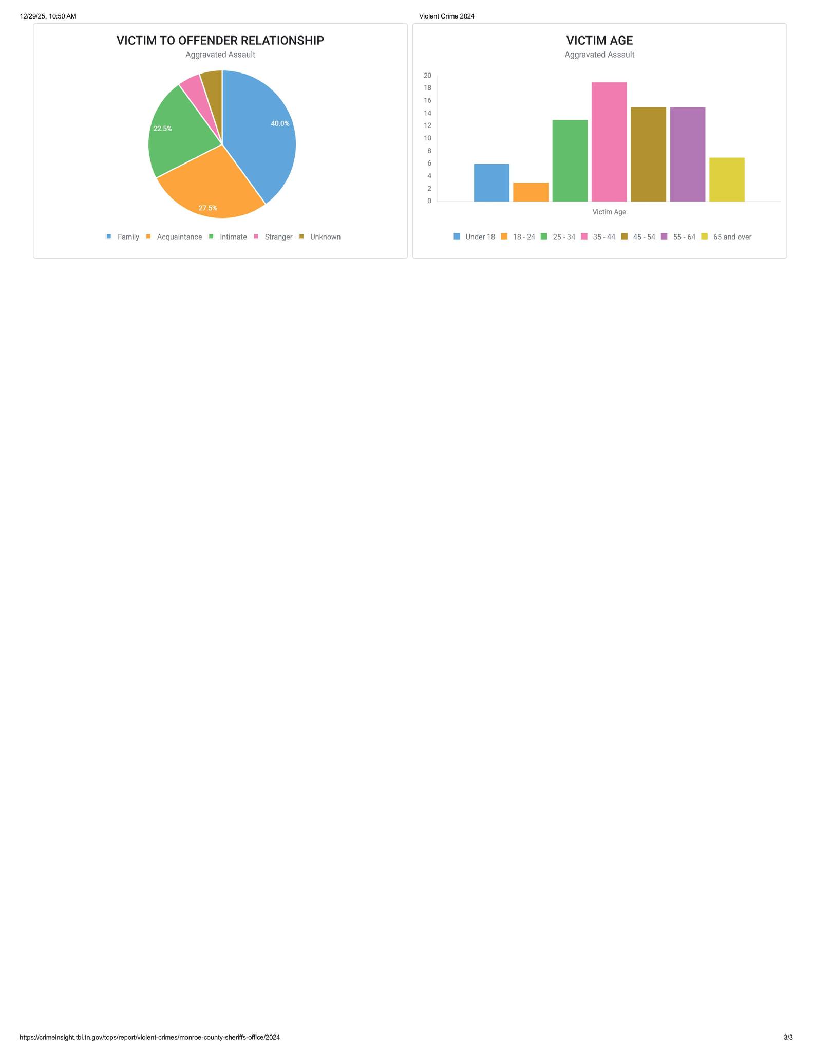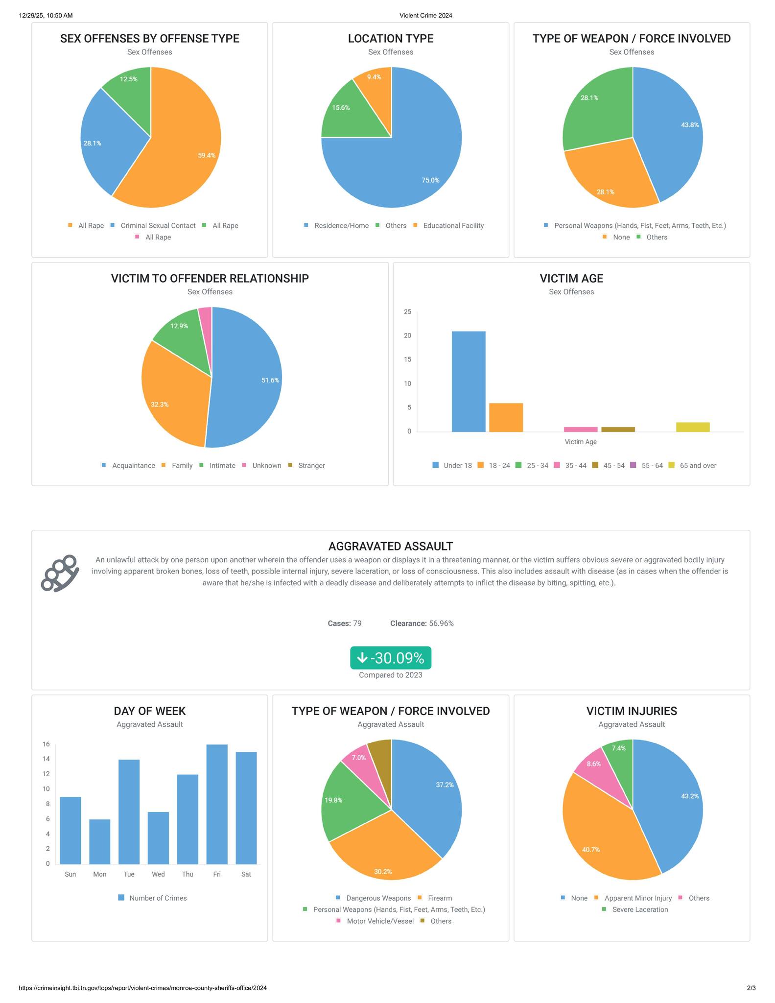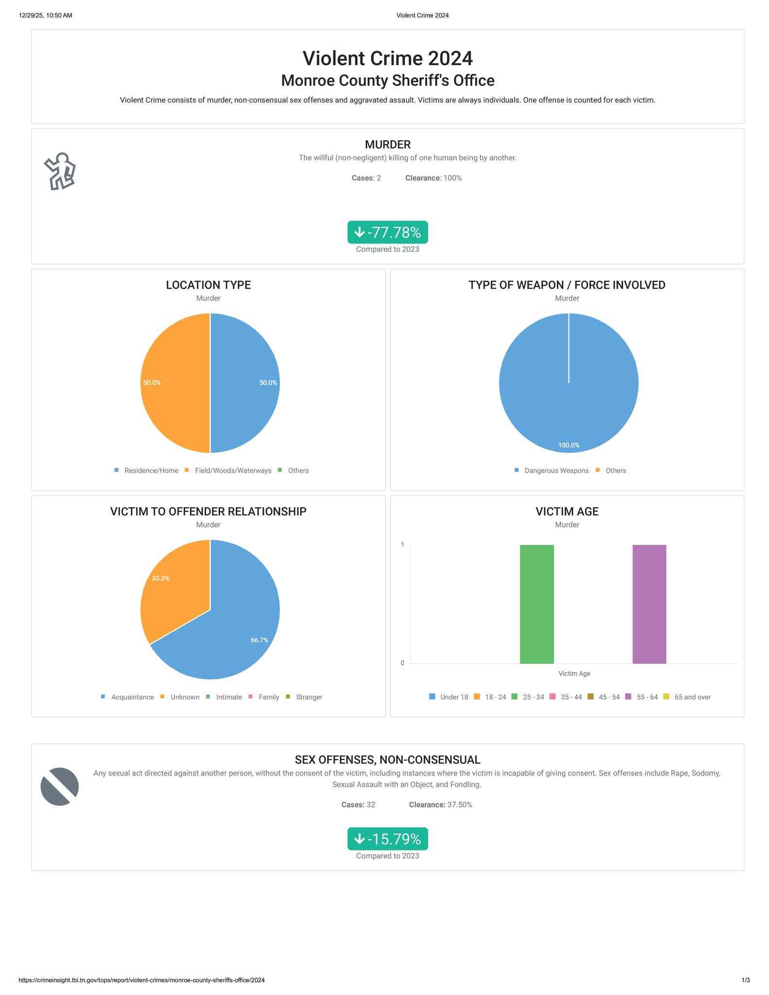 2025 statistics are not yet available, but we will share that information when it becomes available. The data referenced below can be found on the TBI website at: https://crimeinsight.tbi.tn.gov/…/monroe-county…/2024
