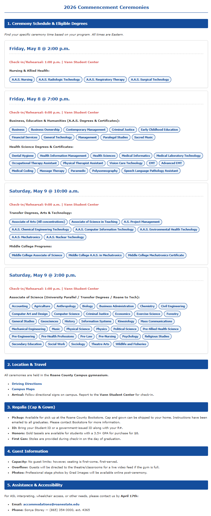 April 27, 2026 in Education, Top Stories ROANE STATE RELEASES FULL COMMENCEMENT CEREMONIES SCHEDULE Shea James 0 Like Post