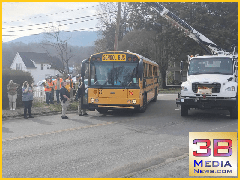 A Roane County school bus carrying students clipped a power pole at the intersection of Chamberlain Avenue and Strang Street around 4:00 p.m. today. Crews from the Rockwood Electric Utility responded quickly, securing the pole and de-energizing the line to allow the remaining students to exit the bus safely.