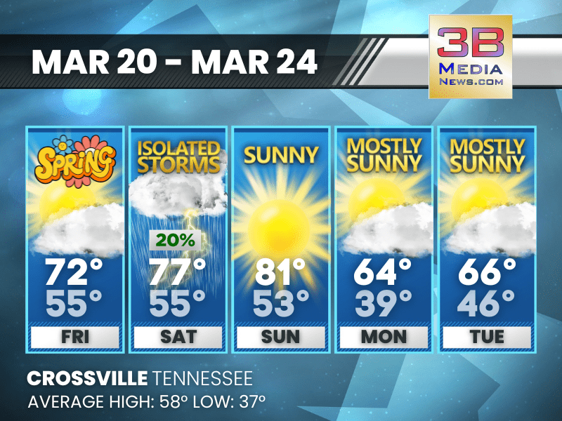 Weather information is provided by the National Weather Service in Nashville and Morristown. You can hear the latest forecast on 105.7 The Hog, 94.1 The Vibe (1410 AM), Spirit 101.9, 98.9 The Wolf, and 93.3 The Ranch (580 AM). Stay connected with Weather Reporter Johnny Caudle on social media by following him on Facebook, X, Instagram, Bluesky, and YouTube. You can also click here to send him an email.
