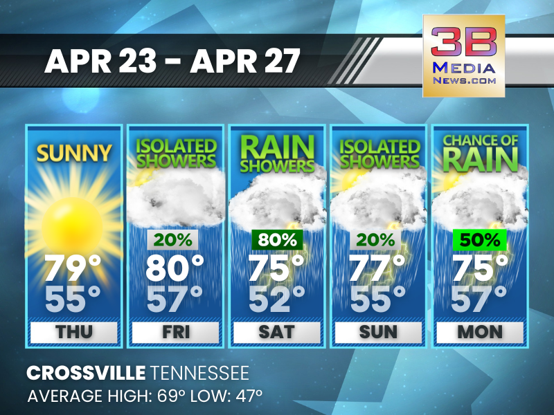 Weather information is provided by the National Weather Service in Nashville and Morristown. You can hear the latest forecast on 105.7 The Hog, 94.1 The Vibe (1410 AM), Spirit 101.9, 98.9 The Wolf, and 93.3 The Ranch (580 AM). Stay connected with Weather Reporter Johnny Caudle on social media by following him on Facebook, X, Instagram, Bluesky, and YouTube. You can also click here to send him an email.