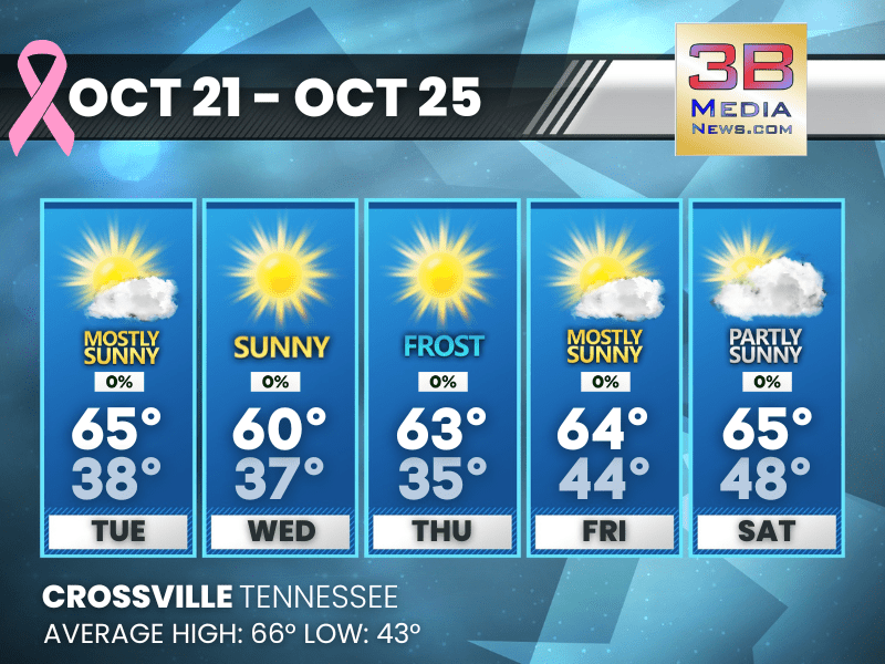 Weather information is provided by the National Weather Service in Nashville and Morristown. You can hear the latest forecast on 105.7 The Hog, 94.1 The Vibe (1410 AM), Spirit 101.9, 98.9 The Wolf, and 93.3 The Ranch (580 AM). Stay connected with Weathercaster Johnny Caudle on social media by following him on Facebook, X, Instagram, Bluesky, and Threads. You can also click here to send him an email.