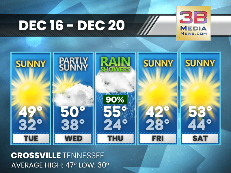 Weather information is provided by the National Weather Service in Nashville and Morristown. You can hear the latest forecast on 105.7 The Hog, 94.1 The Vibe (1410 AM), Spirit 101.9, 98.9 The Wolf, and 93.3 The Ranch (580 AM). Stay connected with Weathercaster Johnny Caudle on social media by following him on Facebook, X, Instagram, Bluesky, Mastodon, TikTok, YouTube, and Threads. You can also click here to send him an email.