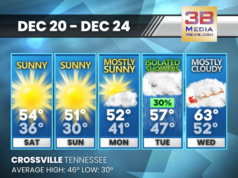 Weather information is provided by the National Weather Service in Nashville and Morristown. You can hear the latest forecast on 105.7 The Hog, 94.1 The Vibe (1410 AM), Spirit 101.9, 98.9 The Wolf, and 93.3 The Ranch (580 AM). Stay connected with Weathercaster Johnny Caudle on social media by following him on Facebook, X, Instagram, Bluesky, Mastodon, TikTok, YouTube, and Threads. You can also click here to send him an email.